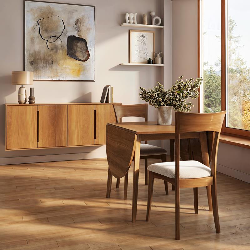 Copeland enters the media and storage category this fall with five customizable consoles, including one that is wall-mounted. Each console is available in 66- or 79-inch widths and in two heights. They also are available in walnut or cherry, each in five finishes. Also new is another sit-stand desk designed in collaboration with Marc Boudreau. The Odin desk has clean lines with a Scandinavia influence. It is available with 60- or 72-inch-wide desktops in natural walnut or cherry in five finishes. A dining chair is added to the Baton dining collection; drop leaf tables are added to the Catalina dining collection, and the Estelle lounge chair is now available in cherry with five finish options. Copeland is a family-owned and operated enterprise crafting its solid hardwood furniture in a state-of-the-art manufacturing facility in Bradford, Vermont. www.copelandfurniture.com
