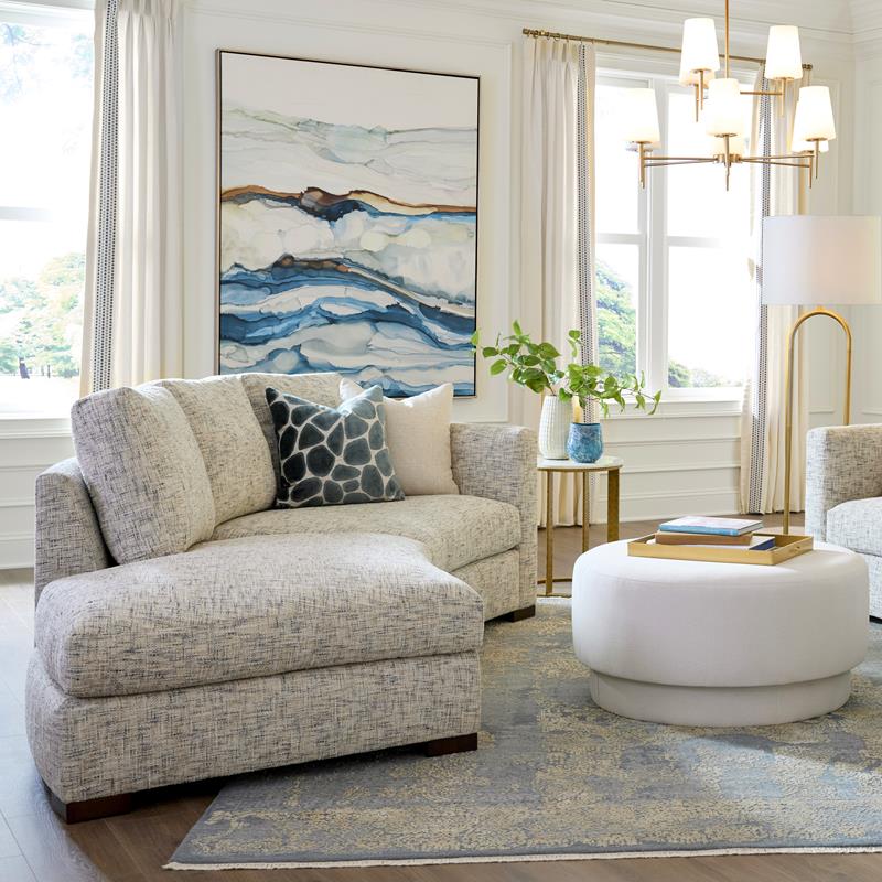 This season CR Laine focuses on the “softer side of modern.” Traditional elements – box pleat skirts, ruffles, floral prints – are still trending, but the company has not abandoned modern silhouettes that are still very popular. Details like trims and contrast welts are very on-trend, while nail head trim is waning. Small-scale accent chairs are also a new focus for CR Laine this fall. www.crlaine.com