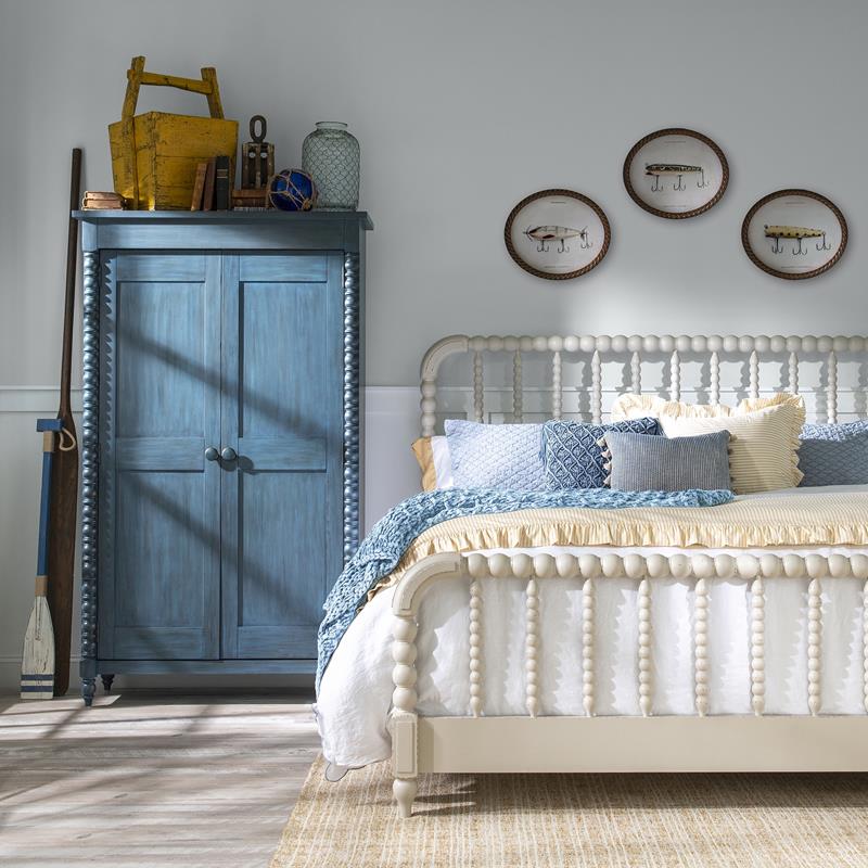 The second installment of the Legacy Classic|Modern collaboration with Country Living and Hearst is called Lake House and includes about 74 pieces described as rustic but cozy. “The market continues to be heavy with clean white and gray finishes, straight angles, chrome and modern, minimalist looks,” observes Chris Pelcher, Legacy Classic|Modern president. “We see a void for more traditional styles with personality; pieces that consumers feel connected to.” Crafted in rustic birch veneers and hardwoods, the core finishes in Lake House are a warm, brown Pinecone, a darker Dried Tobacco and a soft Sail Cloth white painted finish. Accent colors include Sea Glass and Golden Hour. Signature pieces include a Jenny Lind-inspired Bobbin Bed, a two-tone Shutter Panel Bed, a plank-inspired Trestle Table and a Round Bobbin Base Dining Table. www.legacyclassic.com